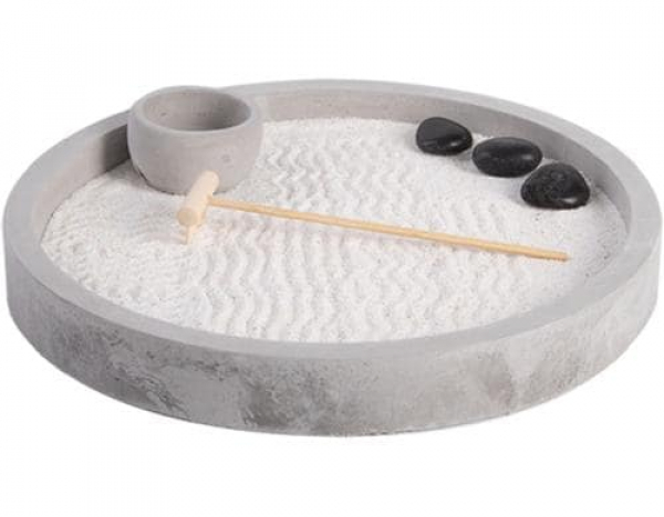 Esschert Design Aufsteller Zen Garten rund 24.2 x 4 cm / Beton, Sand, Bambus, Stein, 24.2x4 cm (DxH) / Thema: Deko-Accessoires