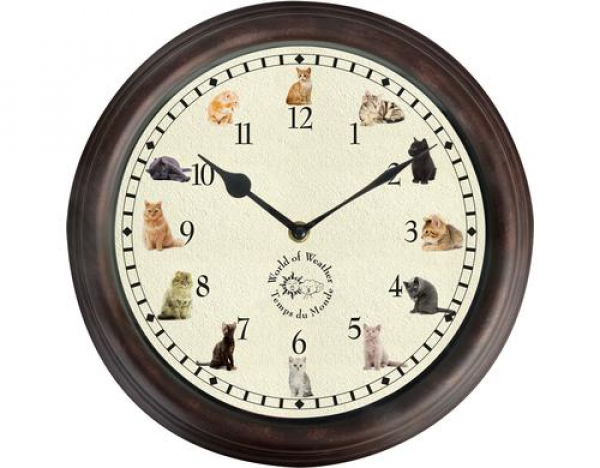 Esschert Design Gartenuhr mit Katzengeräuschen Durchm. 30 cm, Mehrfarbig / PP, PVC, 4.6x30x30 cm (LxBxH) / Thema: Wanduhr