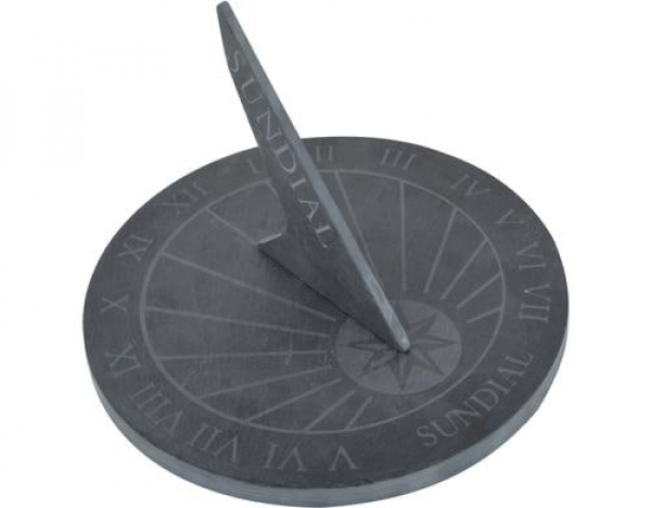 Esschert Design Sonnenuhr rund Schiefer / Schiefer, Text rund, 25x1.6 cm (DxH) / Thema: Dekofiguren