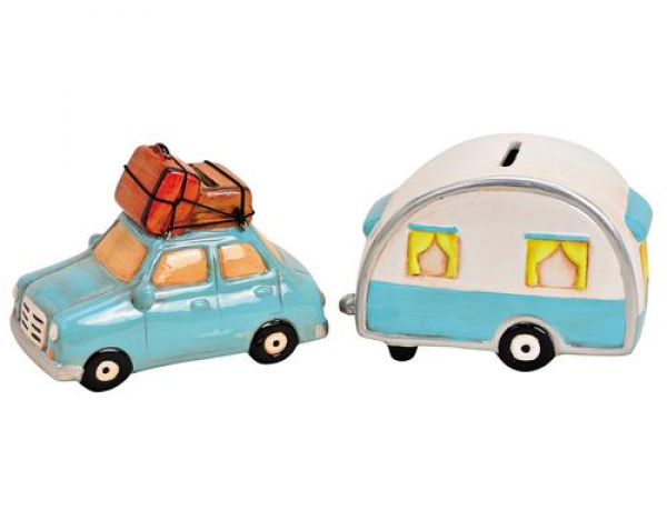 G. Wurm - Spardose Auto mit Wohnwagen 10 x 8 x 15 cm / Keramik,AutoB8xH15xT10/Wohnwagen B8xH15xT10 / Thema: Spardosen