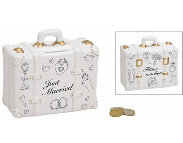 G. Wurm Spardose Koffer Just Married 6 x 14 x 13 cm / B14xT6xH13cm / Thema: Spardosen