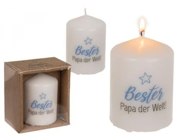 G. Wurm Stumpenkerze Bester Papa der Welt 8 x 6 cm, Weiss / Grösse: 6x8x6cm / Thema: Wachskerzen