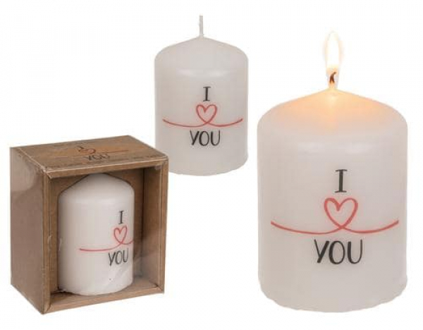 G. Wurm Stumpenkerze I Love You 8 x 6 cm, Weiss / Grösse: 6x8x6cm / Thema: Wachskerzen