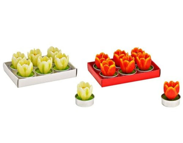 G. Wurm Teelichter Tulpe 6 Stück, Mehrfarbig / 6er Set, 4x7x4cm, Farbe assortiert / Thema: Wachskerzen