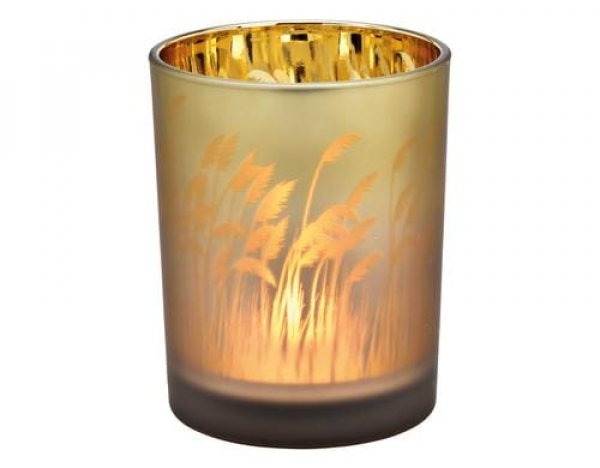 G. Wurm Windlicht Pampasgras 12 cm, Goldbraun / Grösse: 10x12x10 cm / Thema: Windlichter