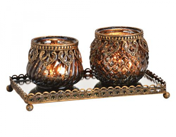 G. Wurm Windlicht auf Spiegeltablett, 20 cm / Metall, Rand Gold, 20x9x10 (B/H/T) / Thema: Windlichter