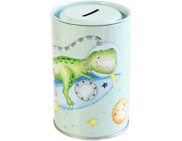 Grätz Spardose Dinosaurier / Metall, 12.5x8.5 cm (HxD), Deckel aufmachen / Thema: Spardosen