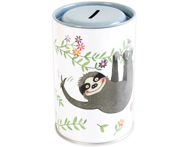 Grätz Spardose Faultier / Metall, 12.5x8.5 cm (HxD), Deckel aufmachen / Thema: Spardosen