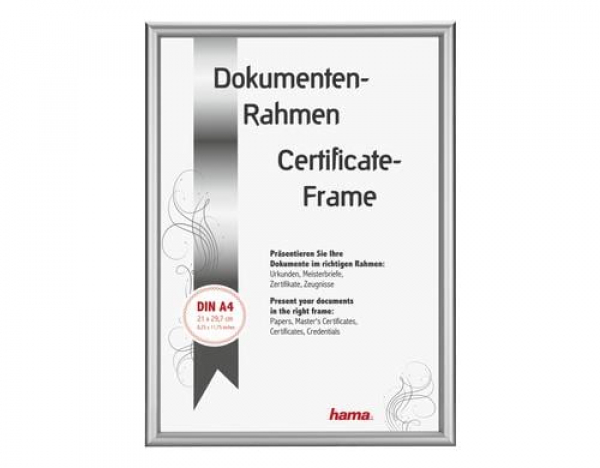 Hama Bilderrahmen Detroit für Dokumente A4, Silber / Polysterol, 21 x 29.7 cm, DIN A4 / Thema: Bilderrahmen