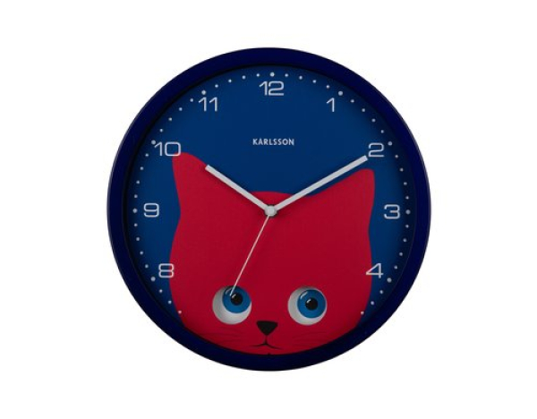 KARLSSON Wanduhr Katze durchm. 30.8 cm, Dunkelblau / Wall clock Peekaboo Cat dark blue / Thema: Wanduhr