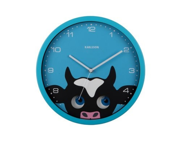 KARLSSON Wanduhr Kuh durchm. 30.8 cm, Blau / Wall clock Peekaboo Cow blue / Thema: Wanduhr