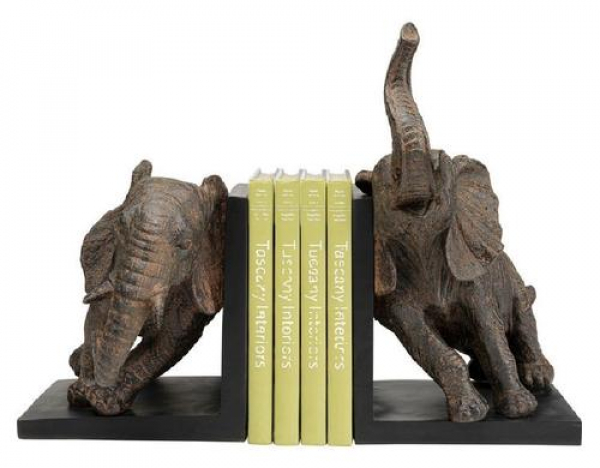 Kare Buchstützen-Set Elefanten 2er Set Braun / Polyresin, 25x31x21 cm (HxBxT), Antirutsch / Thema: Buchstützen
