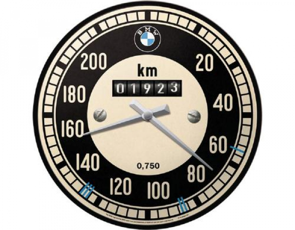 Nostalgic Art Wanduhr BMW Tachometer Durchm. 31 cm, Schwarz/Weiss / 31x5.5 cm (DxT), exkl. AA Batterien / Thema: Wanduhr