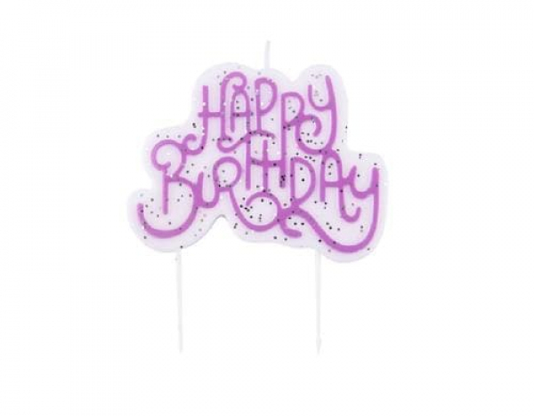 PME Kerze Happy Birthday Rosa/Weiss, 1 Stück / 3d Kerze. Grösse: 10 x 7 cm. / Thema: Dekokerzen