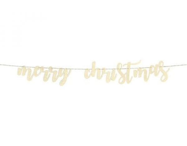 Partydeco Weihnachtsdeko Holzgirlande Merry Christmas Weihnachten / 87 x 17 cm, Holz, 1 Stk / Thema: Weihnachtsdekoration