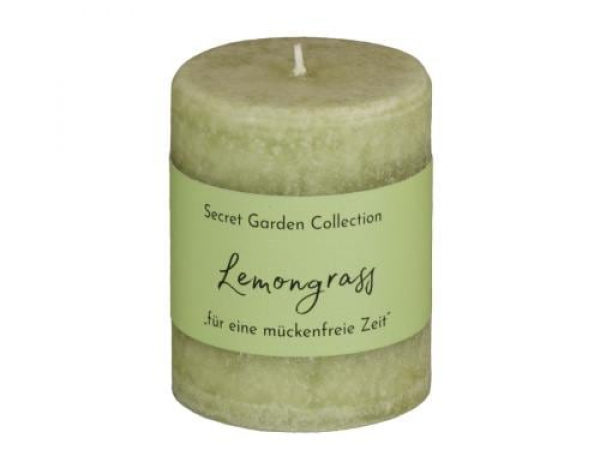 Schulthess Kerzen Zylinderkerze Secret Garden Lemongrass 8 cm / D: 7cm, H: 8cm, hält Mücken fern, Duftkerze / Thema: Outdoor Kerzen