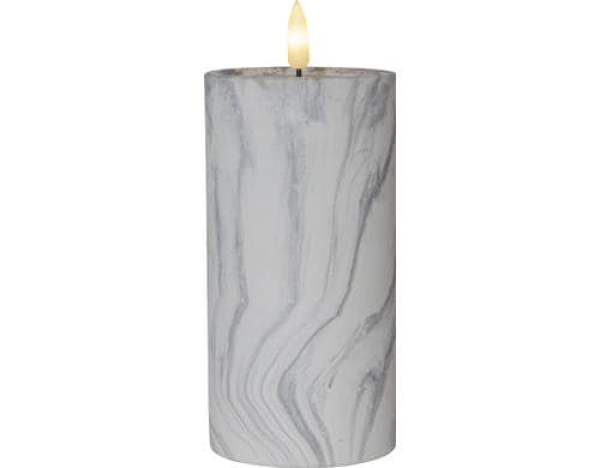 Star Trading LED-Kerze Pillar Flamme Marble durchm. 7.5 x 17.5 cm, Grau / Indoor, Grau, 17.5cm, Timerfunktion, 0.03W / Thema: LED Kerzen