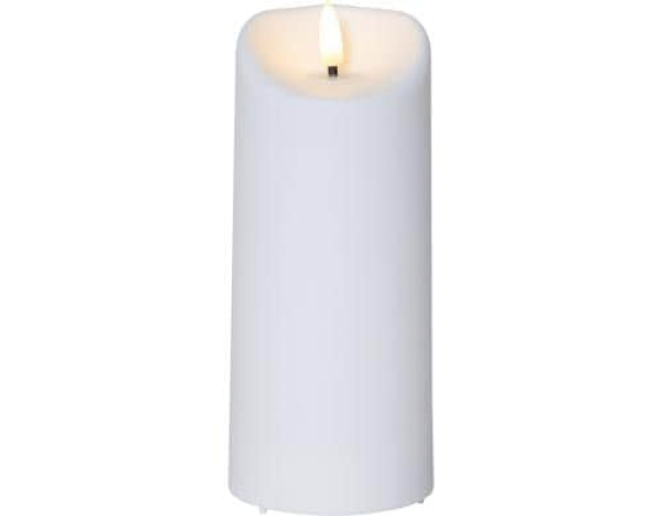 Star Trading LED-Kerze Pillar Flamme durchm. 7.5 x 18 cm, Weiss / Outdoor, Weiss, 18cm Höhe, Timerfunktion / Thema: LED Kerzen