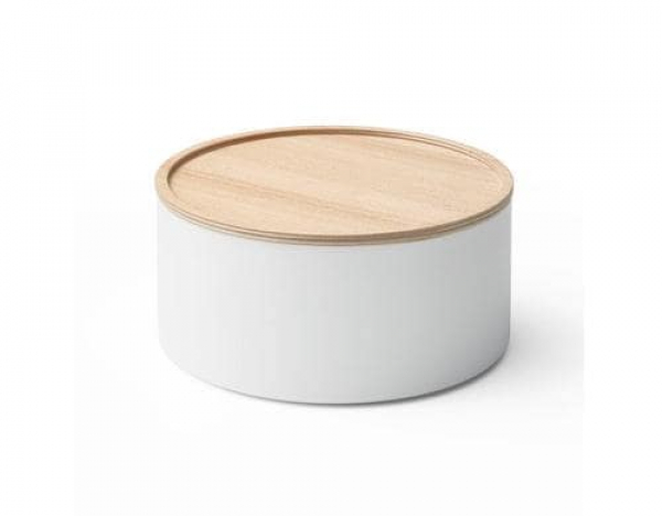 Yamazaki Aufbewahrungsbox Rin Nature/Weiss / weiss h 11 x Durchm. 22 cm, Metall/Holz / Thema: Aufbewahrungsbox