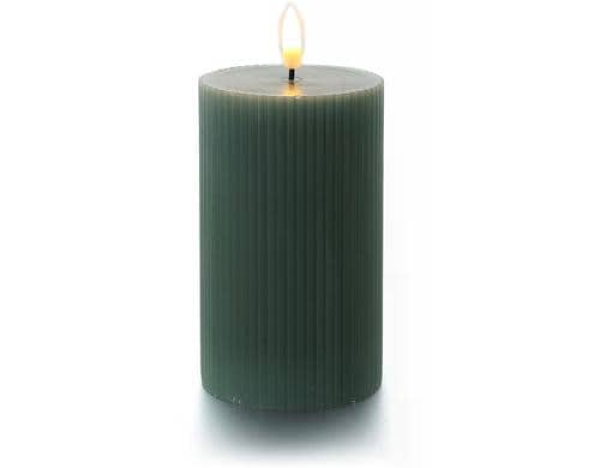 balthasar LED Zylinderkerze Rillen, Grün / LED warmweiss, 125 x 75mm, exkl. 3x AAA / Thema: LED Kerzen