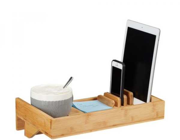 relaxdays Bettablage mit Halterungen Nature / Bambus Traglast 10kg, 9.5x35x23 cm (HxBxT) / Thema: Aufbewahrungsbox