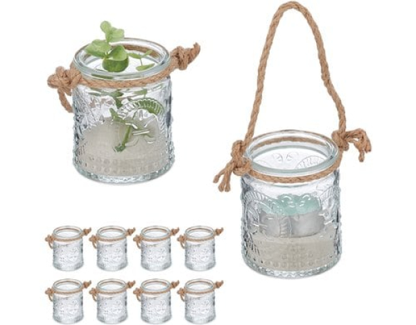 relaxdays Windlicht Summer Vintage 7 cm, Glas, 12 Stück / ca. 7 x 6 cm, Transparent / Thema: Windlichter