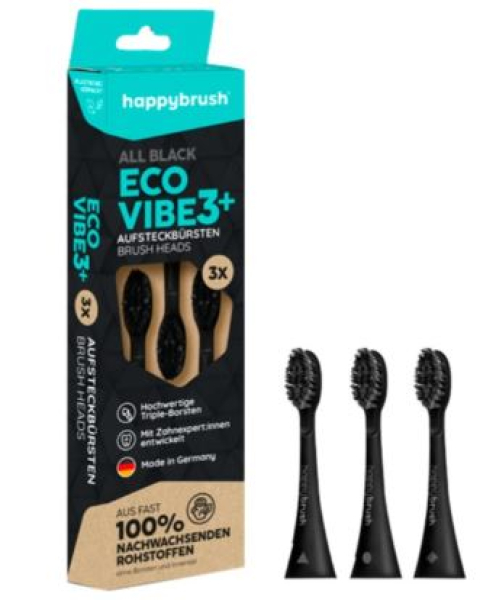 Happybrush - ECO VIBE 3 Aufsteckbürsten (schwarz)