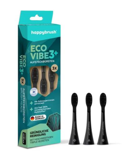 happybrush Zahnbürstenkopf Eco Vibe V3+ Black, 3 Stück