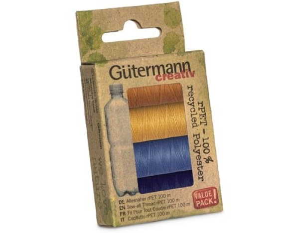 Gütermann Nähgarn-Set Allesnäher rPET Jeansauswahl 4 Stück, Mehrfarbig / Jeans, Spule 100 m, 4 Stk., 100 % PES recy. / Thema: Garn