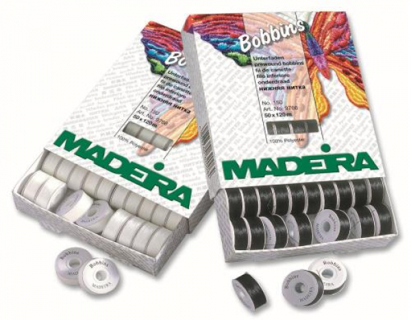 Madeira Unterfaden Bobbins 50 Stück Weiss / 50 Spulen à 120m / Thema: Garn