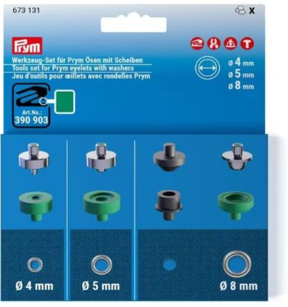 Prym Befestigung Ösen Werkzeug-Set mit Scheiben - durchm. 4, 5 und 8 mm