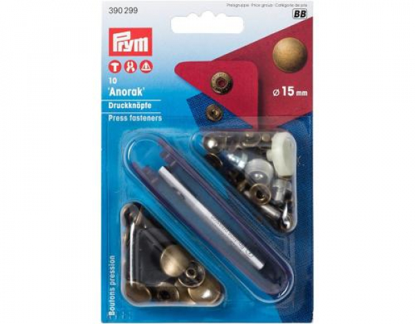Prym Druckknöpfe Anorak 15 mm, 10 Stück / 15 mm, Karte 10 Stück / Thema: Knöpfe