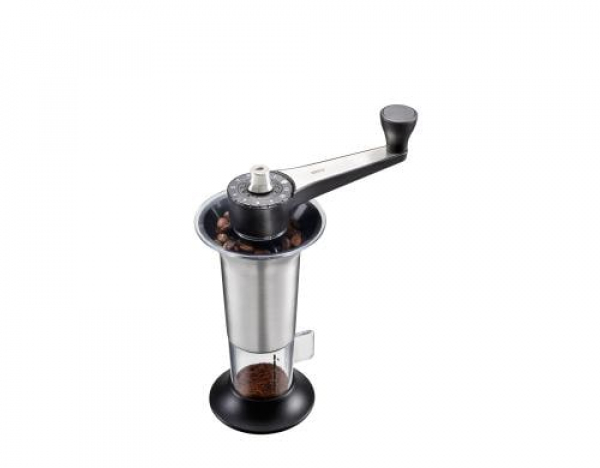 GEFU Kaffeemühle Kaffeemühle LORENZO Silber / Kaffee-Behälter mit Skalierung / Thema: Kaffeemühle