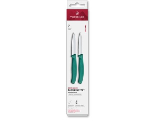 Victorinox Messer-Set Swiss Classic, 8 cm, Grün, 2 Stück / Set 2tgl, gerader + Wellenschliff Mittelsp. / Thema: Küchenmesser
