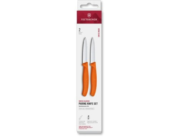 Victorinox Messer-Set Swiss Classic, 8 cm, Orange, 2 Stück / Set 2tgl, gerader + Wellenschliff Mittelsp. / Thema: Küchenmesser