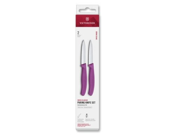 Victorinox Messer-Set Swiss Classic, 8 cm, Violett, 2 Stück / Set 2tgl, gerader + Wellenschliff Mittelsp. / Thema: Küchenmesser