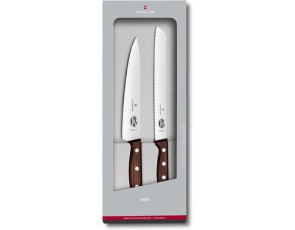 Victorinox Messer-Set Wood 2-teilig, Braun / 2-tgl, Brot-/Tranchiermesser Nussbaum / Thema: Küchenmesser