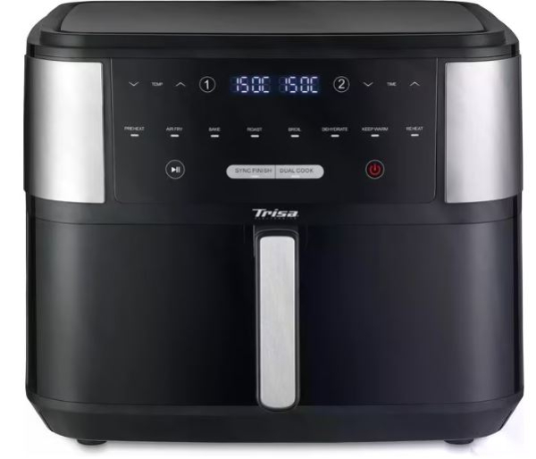Erleben Sie mit der «Crunchy Fry Pro» von Trisa Electronics ein völlig neues Kocherlebnis. Die Heissluftfritteuse bringt Innovation in Ihre Küche und ermöglicht es Ihnen, Gerichte wie ein Profikoch zuzubereiten. Dank der SYNC FINISH Funktion und dem trennbaren Behälter können Sie zwei Gerichte gleichzeitig zubereiten, ohne Kompromisse bei der Knusprigkeit einzugehen. Perfekt koordinierte Mahlzeiten waren noch nie so einfach. Die DUAL COOK Funktion ermöglicht es, den gesamten Behälter für eine grosse Menge zu nutzen, indem Sie dafür die Trennwand entfernen. Mit der «Crunchy Fry Pro» sind Sie bereit für jede Kochherausforderung. Frittieren, grillieren, braten, backen, aufwärmen – mit unserer Heissluftfritteuse beherrschen Sie eine breite Palette an Kochtechniken. Entdecken Sie die kulinarische Vielfalt, die die «Crunchy Fry Pro» bietet. Mit einer Füllmenge von 10 Litern können Sie problemlos verschiedene Arten von Frittiergut gleichzeitig zubereiten. Von Snacks bis zu kompletten Mahlzeiten sind die Möglichkeiten endlos. Präzise Temperaturkontrolle von 50 bis 200 Grad Celsius und ein 60-Minuten-Timer geben Ihnen die volle Kontrolle über Ihre Küche. Die «Crunchy Fry Pro» ist natürlich einfach zu reinigen. Das Zubehör ist spülmaschinenfest, sodass Sie mehr Zeit zum Geniessen und weniger Zeit mit der Reinigung verbringen. Entdecken Sie die Zukunft des Frittierens mit der «Crunchy Fry Pro».