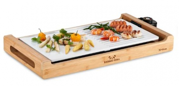 Laden Sie zur Grillparty ein, egal bei welchem Wetter. Dieser stilvolle Tischgrill aus Bambusholz mit Kochfeld 44 x 23 cm ist bestimmt ein kleiner Blickfang. Die abnehmbare Kochplatte mit Keramik- und Antihaftbeschichtung lässt sich einfach reinigen und die kaum sichtbare Auffangschale für herabtropfendes Fett schont die Tischunterlage. Bei kurzen Pausen können Sie das Grillgut einfach auf der Platte lassen und dank der praktischen Warmhaltefunktion (Minimum Temperatur) sofort weiter essen. Mit den mitgelieferten Essstäbchen sorgen Sie Zuhause für ein asiatisches Teppanyaki Erlebnis.