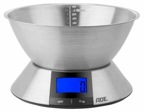 ADE Küchenwaage Hanna Chrom/Silber / Edelstahl-Wiegeschüssel / Thema: Küchenwaage