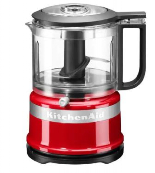 Der Mini-Food-Processor von KitchenAid ist ein kompakter, praktischer Zerkleinerer. Nutzen Sie ihn, um Zutaten schnell zu hacken sowie um Dressings und Saucen vorzubereiten. Das Gerät ist sehr vielseitig, unter anderem haben Sie die Möglichkeit Nüsse, Petersilie und Knoblauch zu zerkleinern, Lebensmittel zu pürieren oder sogar rohes Fleisch zu hacken. Durch die Einknopf-Bedienung ist die Verwendung äusserst einfach. Ihnen stehen zwei Geschwindigkeitsstufen sowie eine Impulsfunktion zur Verfügung. Die Klingen des Zerkleinerers sind aus robustem Edelstahl gefertigt. Der Behälter aus Kunststoff verfügt über ein Fassungsvermögen von 830 Millilitern und ist mit einem Henkel und einem Giessaufsatz versehen. Zur Reinigung können Sie ihn einfach in den Geschirrspüler geben.