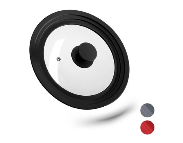 relaxdays Topfdeckel mit Silikon für durchm. 20-24 cm, Schwarz / Glas/Silikon/Metall, Schwarz / Thema: Pfannendeckel