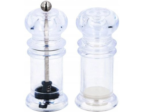 alpina Salz- und Pfeffermühle 2 Stück, 10 cm, Transparent / 4.3x10cm/4.3x11cm (DxH), 56gr/68gr, Bl / Thema: Gewürzmühle