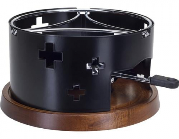 Nouvel Fondue-Rechaud CH-Kreuz Schwarz / Akazie, 23 x 23 x 11cm / Thema: Fondue-Rechaud