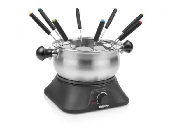 Tristar Fleischfondue-Set FO-1109 10 Teile, Edelstahl/Schwarz / 8 Personen, 1.3l, 1400 Watt / Thema: Fondue-Set