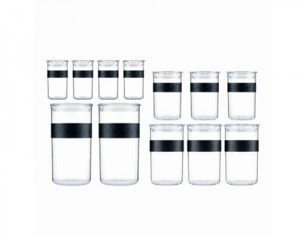 Bodum Vorratsglas Presso 12 Stück, 0.25 l/0.6 l/1 l/2 l, / 4x 0.25L, 3x 0.6L, 3x 1.0L, 2x 2.0L / Thema: Vorratsdosen