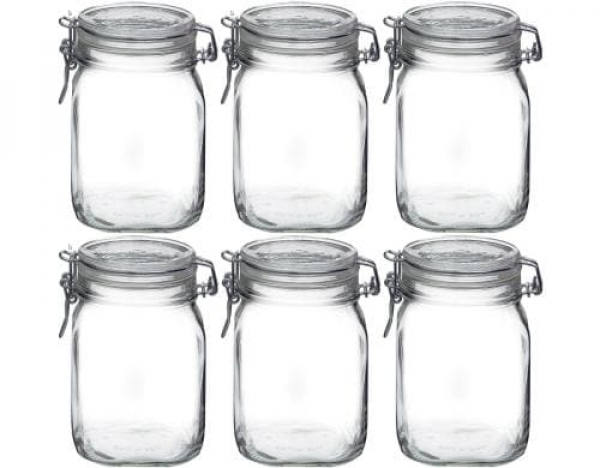 Bormioli Rocco Einmachglas Fido 1000 ml, 6 Stück / mit Bügelverschluss / Thema: Einmachgläser