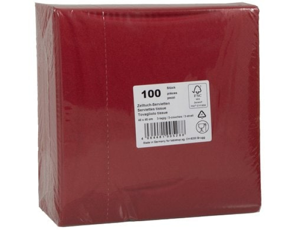 ELCO Papierservietten 40 cm x 40 cm, 100 Stück, Bordeaux / 3 lagig, Zelltuch, Bordeaux / Thema: Servietten