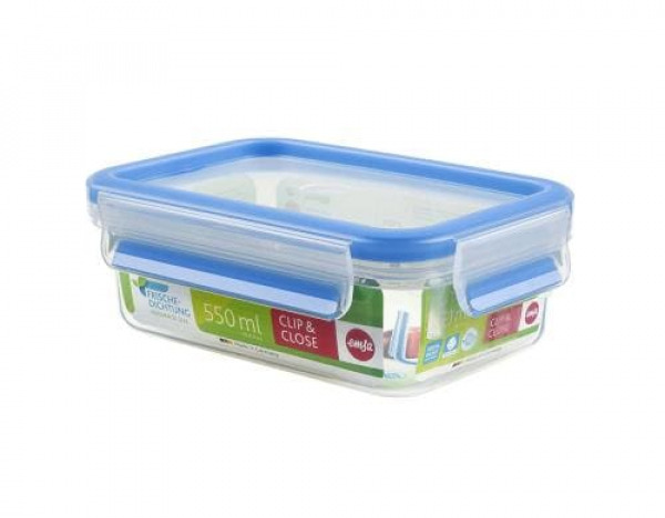Emsa Clip & Close Frischhalted. 0,55L bu Klassikformat, 0,55L / transparent/blau, 0,55 Liter, Klassikformat