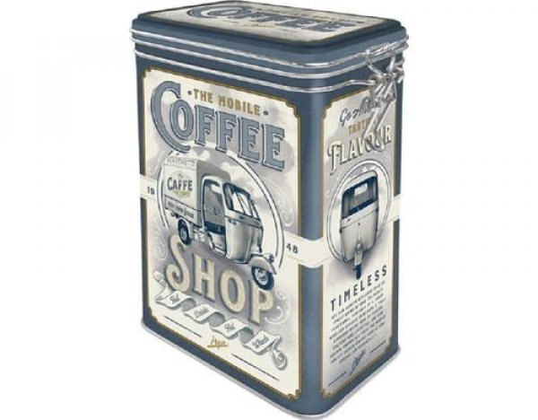 Nostalgic Art Vorratsdose Ape Coffee Shop 1.3 l, Blaugrau/Grau/Weiss / Verschluss, Metall, 11x18x8 cm / Thema: Vorratsdosen
